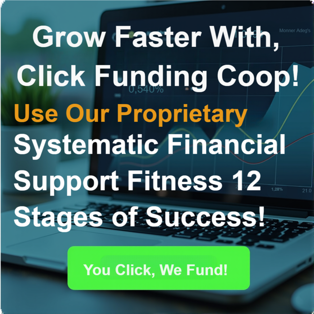 Systematic Financial Support Fitness 12 Stages of Success! That Focused on Fixed Click Funding Coop, to generate & distribute traffic, plus raise capital for you, for consumers and for business owners. No Location Barrier. You work 5-minutes daily for 5-days weekly. You click and watch five 30-second ads.