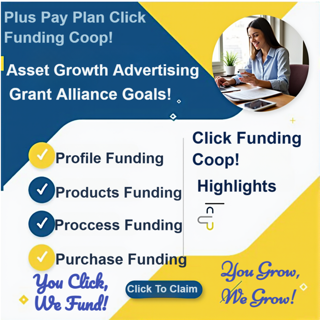 Create Your Click Funding Coop Single Page Site, that generate and distribute traffic. Raise capital for you, for Consumers, for Business owners, for free traffic websites. No Location Barrier. You work 5-minutes daily for 5-days weekly. You click and watch five 30-second ads. Use Systematic Financial Support Fitness 12 Stages of Success; With Plus Pay Plan Verified & Certified Email Bank Edge Remote Email Bankers
